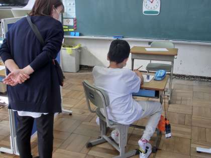 くすのき2組では、漢字の学習をしています。落ち着いた雰囲気の中、各自の課題を集中してやっていました。