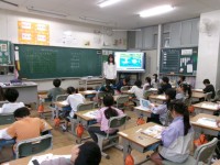 約3か月後には中学校生活がスタートする6年生にとって、どの話題も気になるものばかりです。中学校生活全般のこと、勉強のこと、テストのこと、制服のこと、部活動のことなどなど。最後には中学校で使っている教科書を見せてもらいました。どの子も興味津々でした。