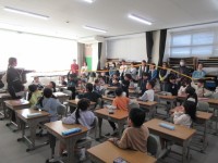 5年生の教室でも、6年生の教室でも、英語のテスト中でした。しかも、聞き取りテストのようです。真剣に取り組んでいたので、そっと廊下から見ていました。