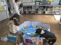 4の1では「月の位置の変化」についての授業を行っていました。話は「上弦の月」「下弦の月」にも及び、なぜ「上弦」「下弦」と言うのかの理由について、担任が実際に弓の絵を描いて説明すると、児童からは「あー−、そういうことか!」と納得した声があがっていました。
