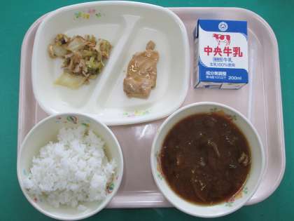 ・ごはん ・牛乳 ・ごじる ・鶏肉の照り焼き ・白菜のおかか煮