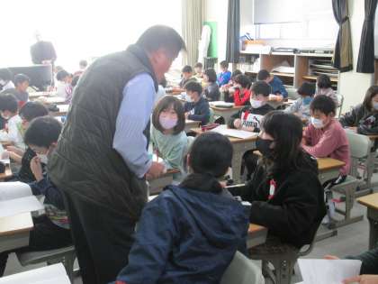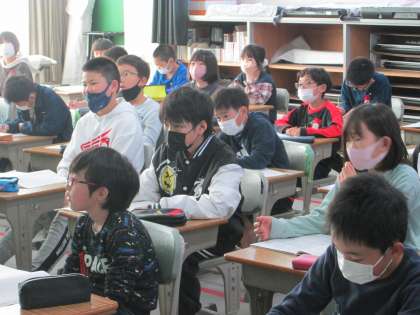 本日3時間目に、講師の先生をお迎えして『虫供養』についての出前授業を行っていただきました。虫供養には800年もの歴史があることや、虫供養を実施する上での課題などについて、講師の先生はとても分かりやすく説明をしてくださり、子どもたちも自分事として興味をもって話に耳を傾け、一生懸命ノートをとっていました。