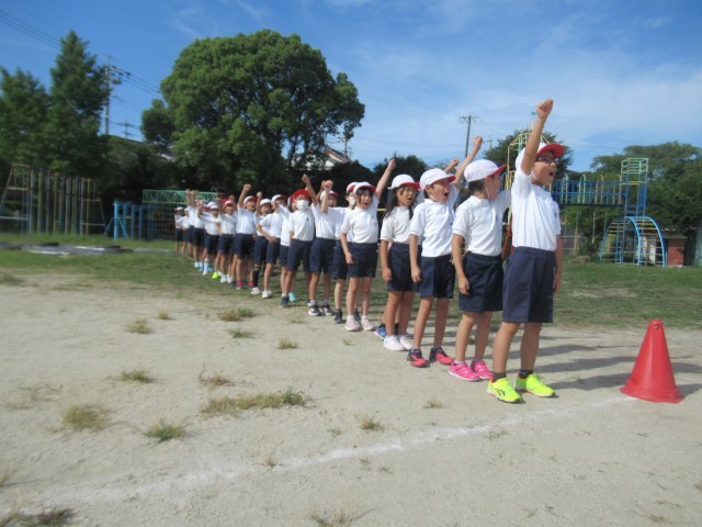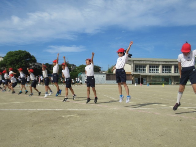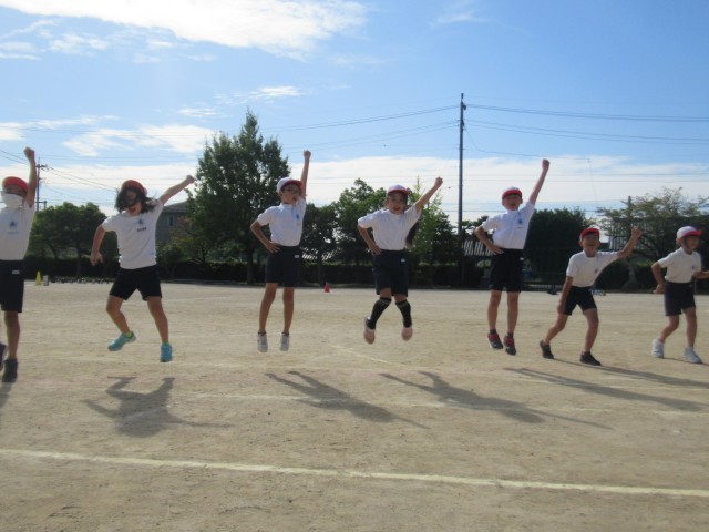 そして、音楽に合わせて腕を力強く突き上げるポーズや、全身を使って高く飛び跳ねるダイナミックな動きは、リズム感が抜群で、見ている側もワクワクしました。3年生の強い一体感を感じました。