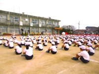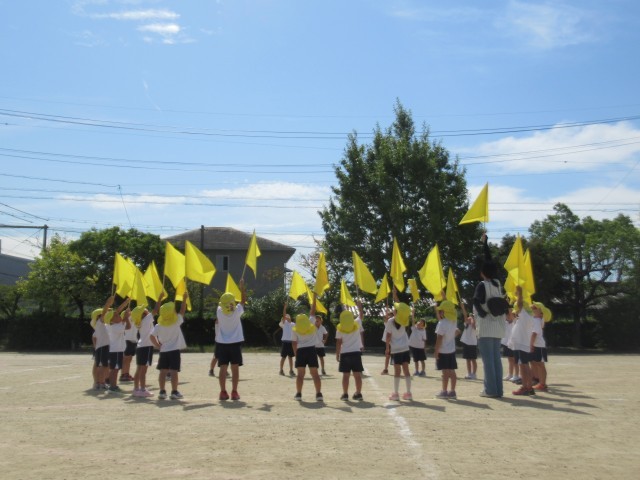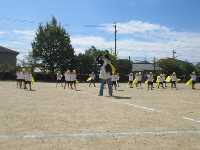 いしざかやまこどもえんの園児が、明日の運動会に向けて、南部小学校へ練習をしに来てくれました。