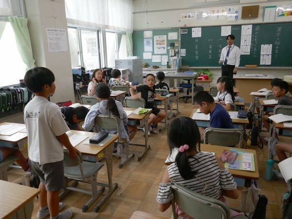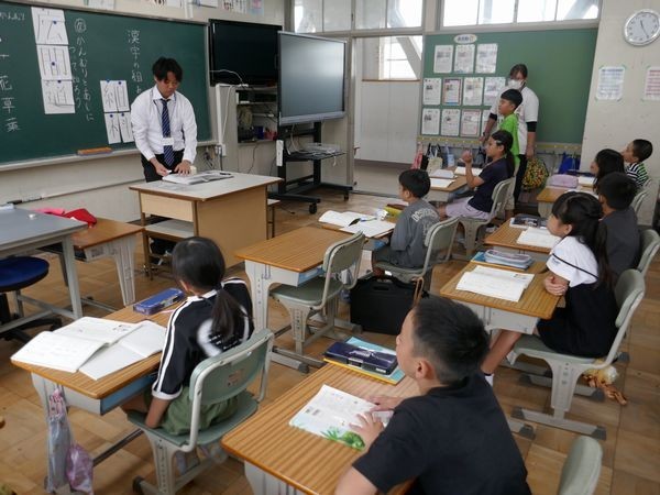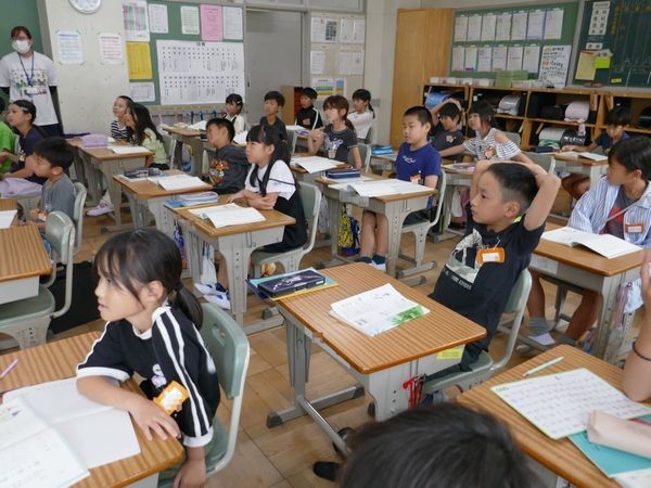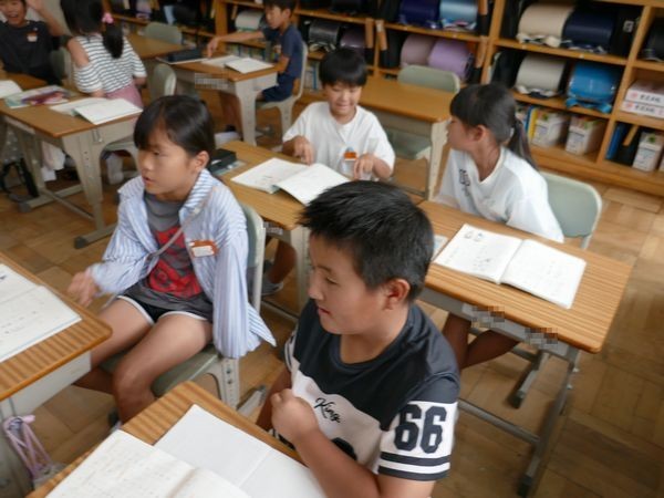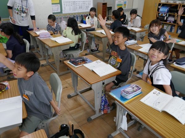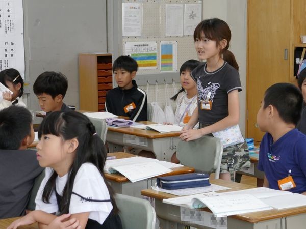 子ども達は考えたことを次々と発表していき、聞いている子からは様々な反応が。実習生と一緒に、活発な授業をつくっていました。