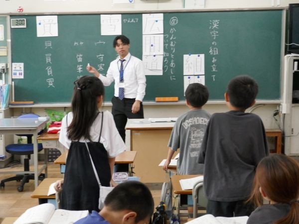 3年1組は教育実習生による授業。国語の「漢字の組み立て」についての勉強です。