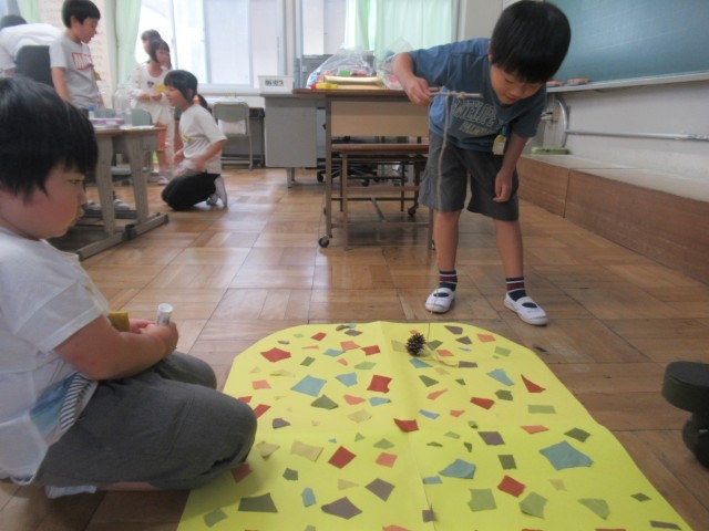 各ご家庭でご準備いただきましたどんぐりや松ぼっくりを使って、自分たちが考えたゲームや遊びを作っていました。
