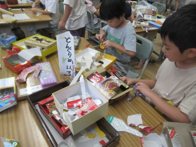 10月30日(木)の幼保小交流会で、園児を招いて行う「あきまつりをしよう」の準備をしていました。