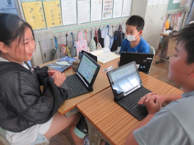 その後、子どもたちは協働学習ツールを活用し、話し合いを進めました。