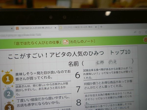 3年1組の社会科では、10/1に見学に行ったスーパーマーケットの様子をまとめていました。自分が発見したお店の工夫をトップ10にします。