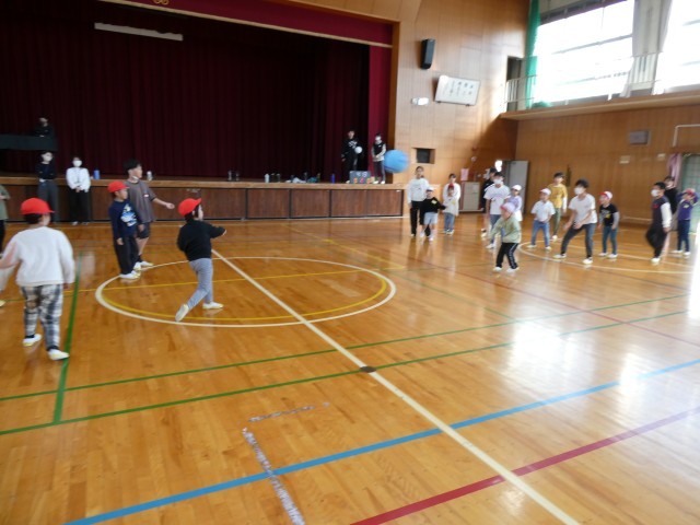 1年生と6年生がペア活動として、「ペア遊び」を行いました。体育館では、「王様ドッジボール」を、運動場では「猛獣狩りゲーム」を行っていました。
