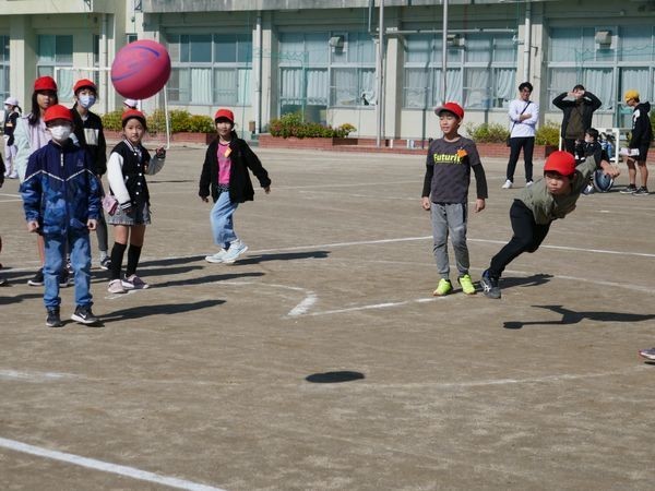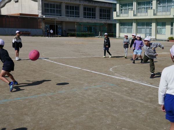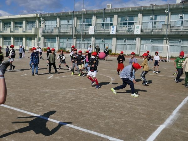 大放課は、3,4年生ペア学年による「ペア遊び」の時間。今日は外でドッジボール大会です。