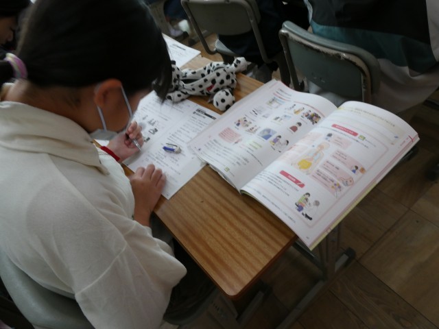 子どもたちは、病気の予防について「病原体をなくす」「うつる道筋を断ち切る」「抵抗力を高める」という3つの視点があることを理解し、具体的な予防方法を各自がワークシートに書き込みました。書き終わった後は、隣の席の友達と積極的に意見を交換して、友達に考えに耳を傾けていました。