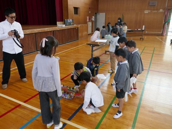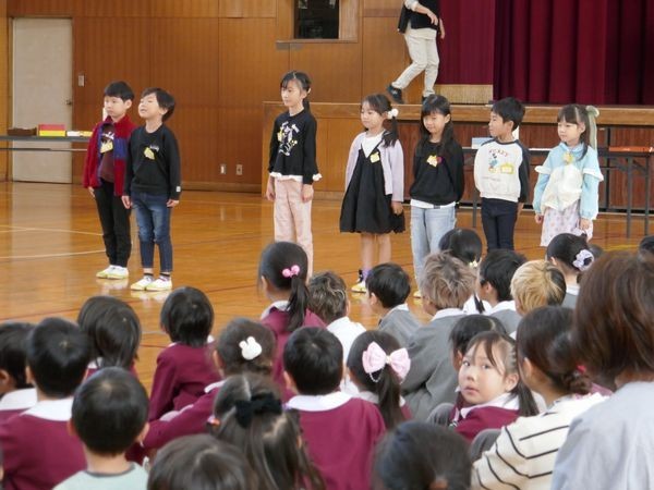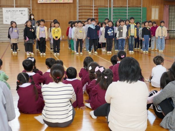 今日は町内の全小学校で、一斉交流会が行われました。南部小学校には、ほくぶ幼稚園、城山保育園、いしざかやまこどもえん、中部保育園の年長園児が訪問してくれました。