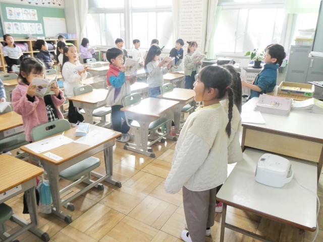 朝の会で歌声が響いていました。子どもたちの歌声が教室いっぱいに響きわたり、私たちの心も温かい気持ちで満たされました。