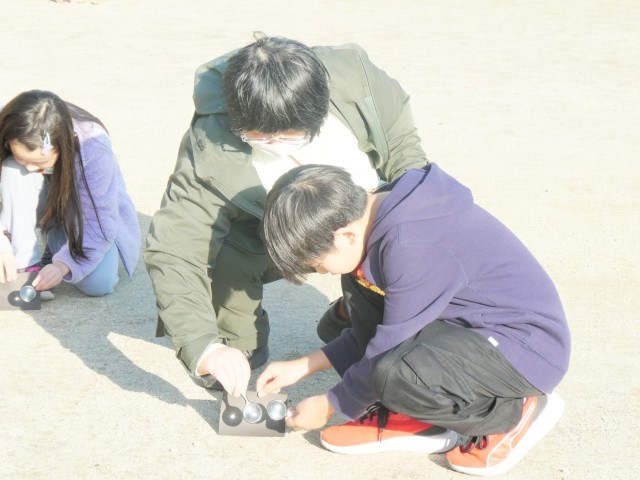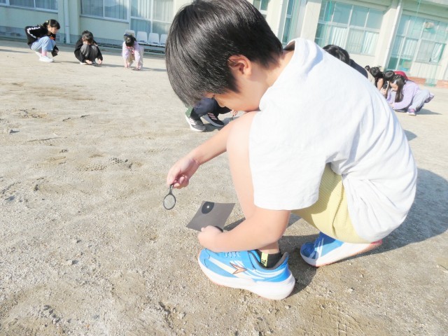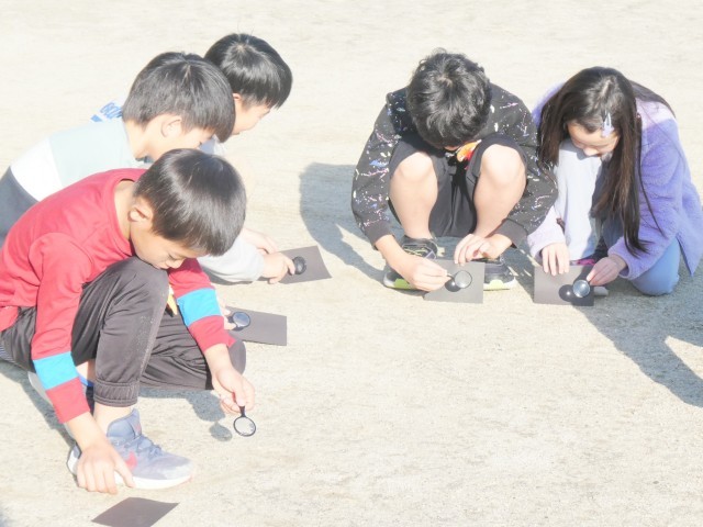 「光とレンズ」の学習をしました。 みんなで運動場に出て、凸レンズが光を一点に集める働きがあることを確かめる実験でした。