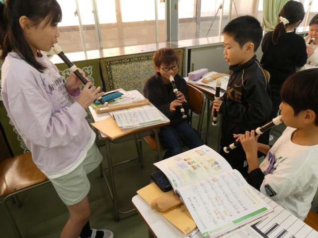 4年生の音楽では、リコーダーの練習に真剣に取り組んでいました。