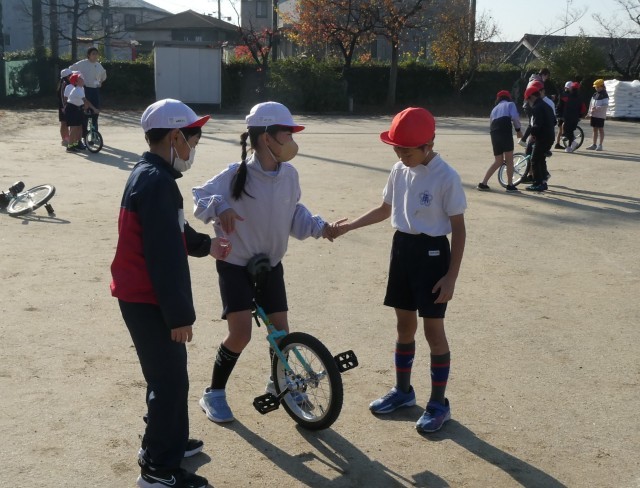 転んでも「もう一回!」と立ち上がるたくましさと、友だちと手を取り合う優しさなど、3年生の一輪車の学習は、身体能力だけでなく、心の成長にもつながる大切な時間となっていました。