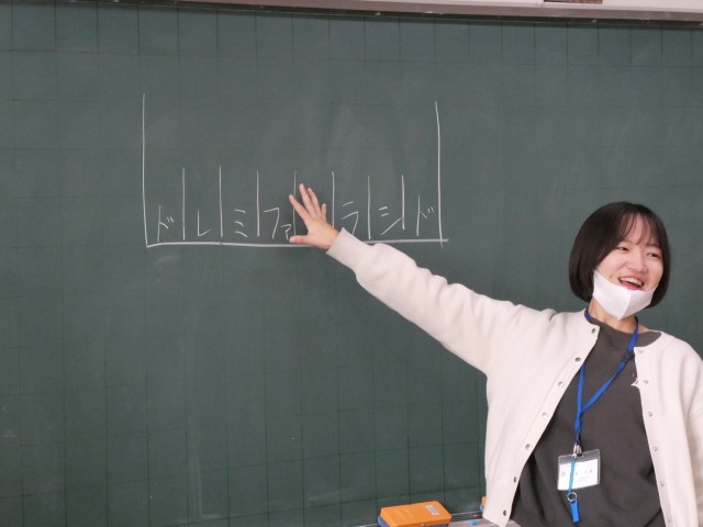 2年生の音楽の授業では楽しい楽曲「こぎつね」の学習をしていました。