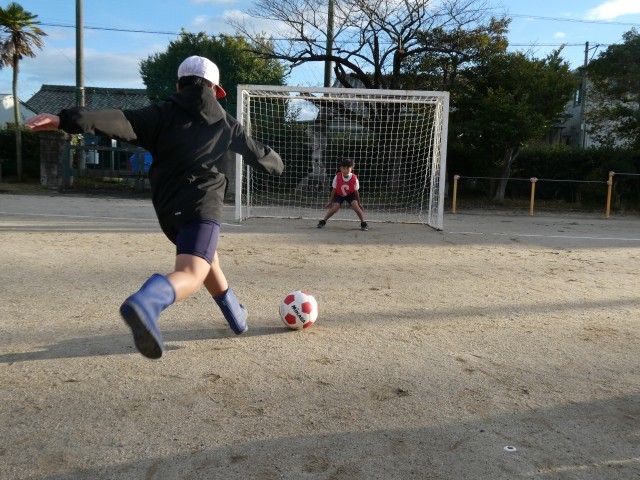 サッカークラブでは、長靴でも鋭いシュートを決めていました。