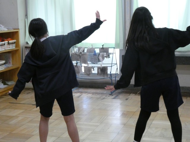 ダンスクラブでは、2グループに分かれて、リズムよく踊っていました。