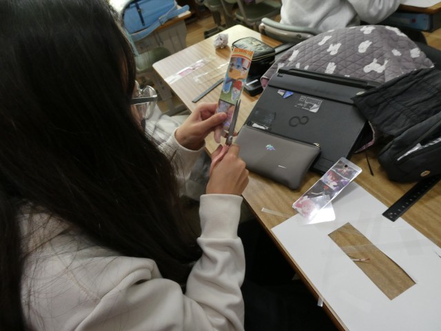 コンピュータクラブでは、自分の好きな絵柄で、しおりを作成していました。