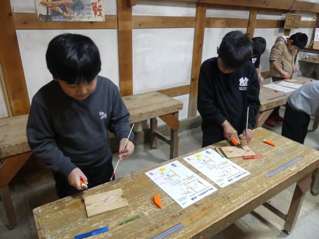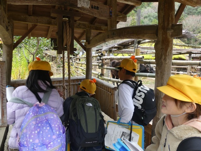 施設内では、午前中はグループに分かれて、昔のくらしの様子や生活の工夫などを見学メモにたくさん書き込んでいました。