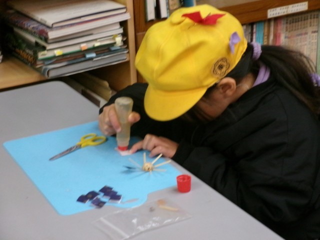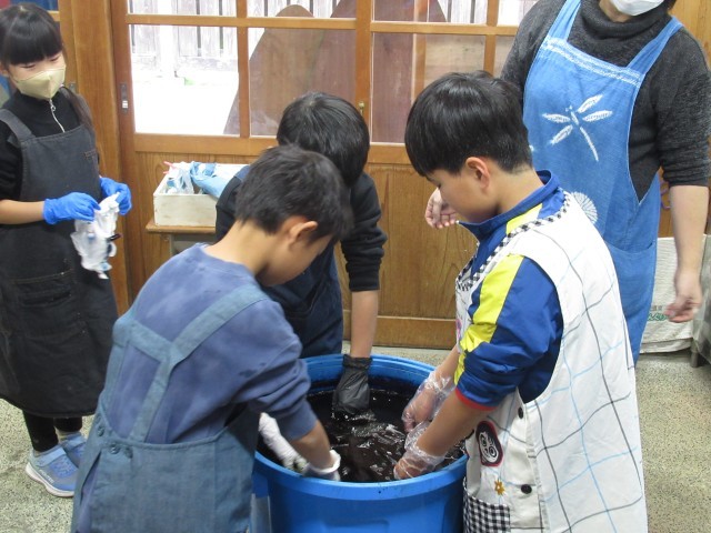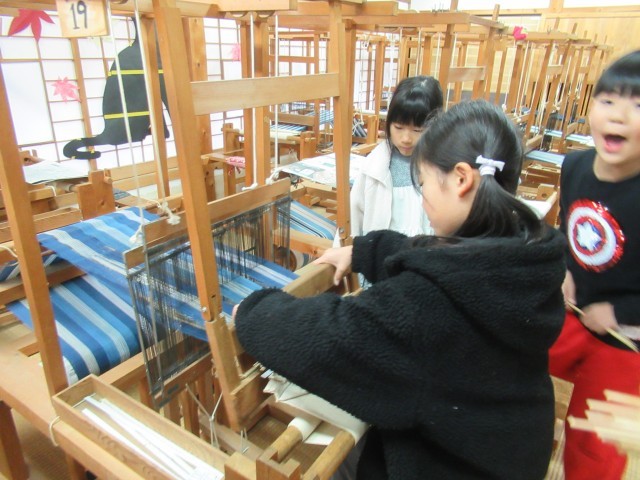 午後からは体験学習を行いました。機織り、藍染め、風車、竹とんぼの中から自分が体験したいものを選び、素敵な作品を作ることができました。