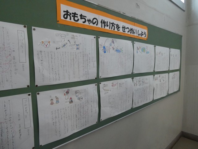 この単元では、事柄の順序などを考えながら、おもちゃの作り方を説明する文章を書くことに挑戦しています。