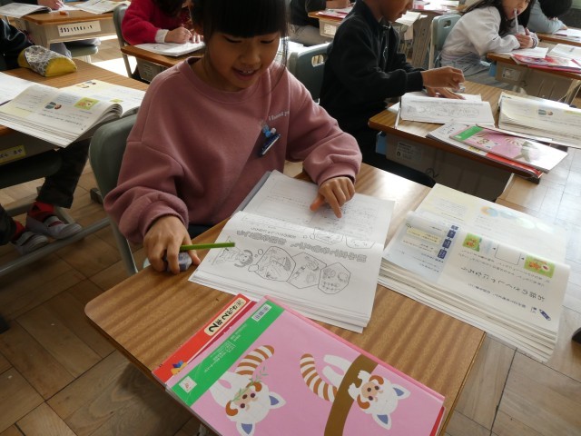 先生が問いかけると、子ども達は熱心に考え、教科書の例を参考にしながら、物語を構成する枠組みを理解することができました。