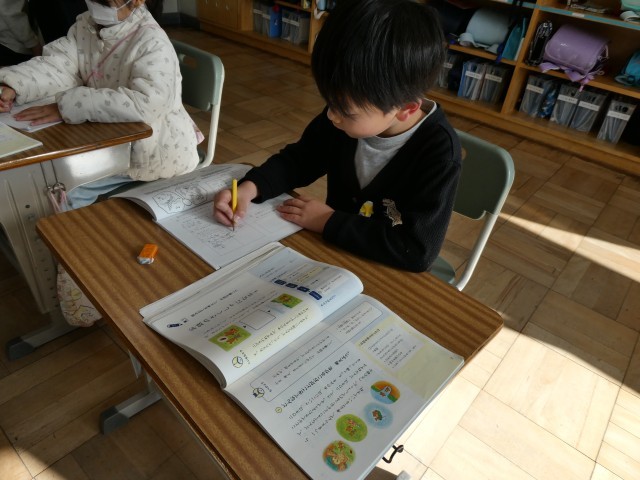 鉛筆を握り、真剣な表情で書き進める姿は、まさに小さな作家のようでした。