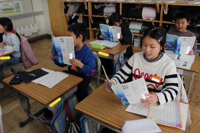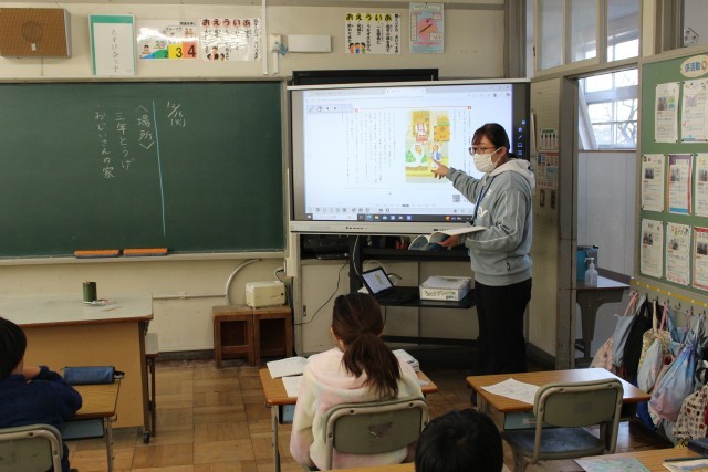 3年生の国語は「3年とうげ」の読み取りをしていました。
