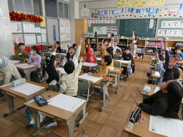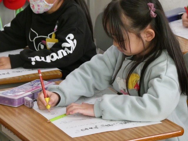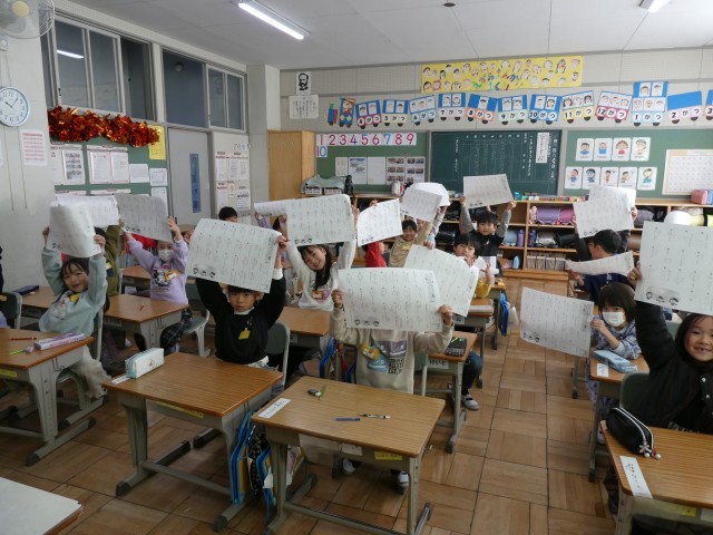 自分の正解だけでなく、クラスみんなで満点を目指したいという強い思いが、友達を思いやる行動につながっています。友達に優しく書き方を教える姿には、1年生らしい純粋で温かい人間性が溢れていました。