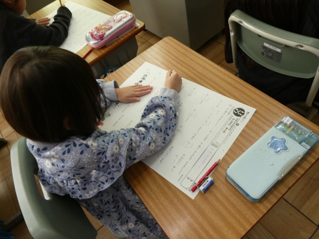 途中で諦めるのではなく「ええと、たしか…」と記憶を呼び起こしたり、すぐに、空中に指で書いて思い出そうとしたりして、最後まで粘り強く書き切ろうとする姿が見られました。