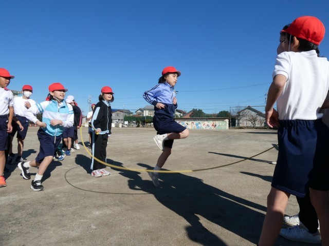 「前の人との間隔を詰めよう」「縄の前の方で跳ぶといいよ」と、アドバイスを送り合う場面も見られました。