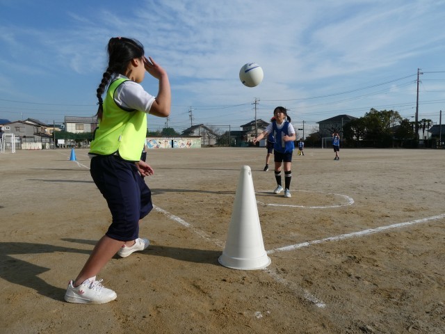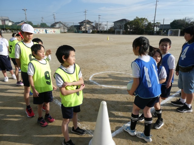ベースボール型の学習では、「塁への到達が、打者走者なのか、守備側なのか」ということを競い合います。まだまだ、大人チームには勝てないと思いますが、1月23日(金)の学校公開日では、親チームと対戦をします。子どもたちの全力のプレーを間近でご覧ください。