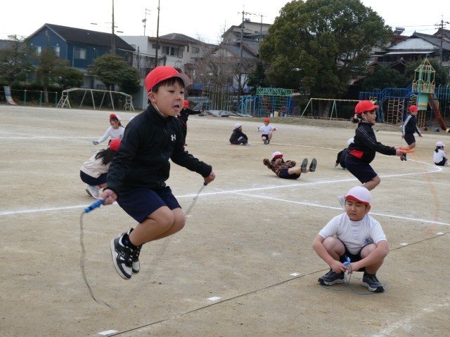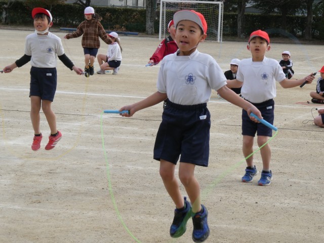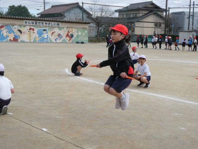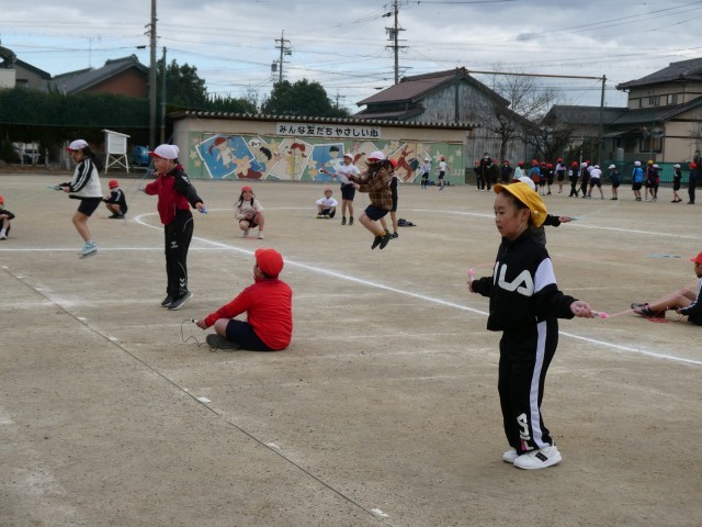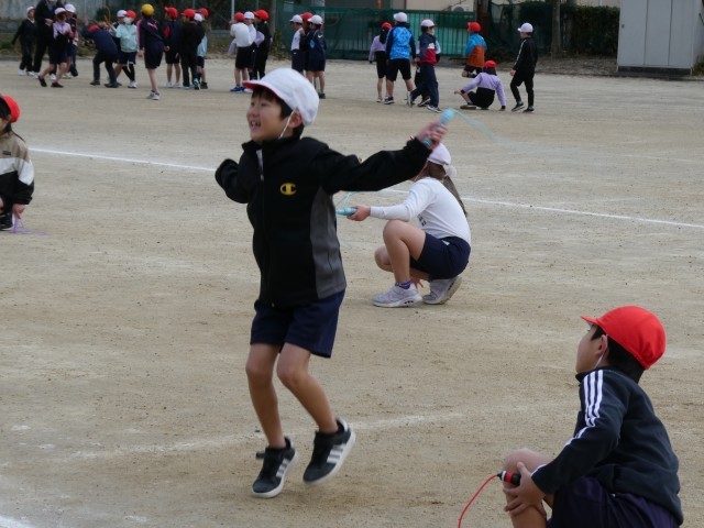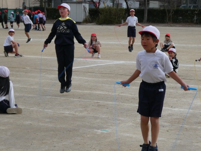 寒空の下、5時間目になわとび大会が行われていました。前跳びは時間とびでした。早くに失敗してしまった子も、まだ跳んでいる子に「がんばれ!」と声援を送る姿があり、みんなでがんばっている雰囲気が感じられ、とてもよかったです。そのあと、後ろ跳び、あや跳び、二重跳びは、ペアで回数を数えていました。得意としている子もいれば、まだなかなか跳べない子もいるようでしたが、みんな一生懸命チャレンジをしていました。上位の子には賞状があるようです。楽しみですね。大放課には、1月23日(金)のなわとび集会に向けて、みんなで声をかけ合いながら、大縄跳びの練習をしています。1回でも多く跳べるようになるようにみんなでがんばっていってほしいです。