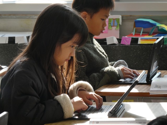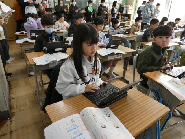授業では、タブレット端末と協働学習ツールをフル活用していました。
