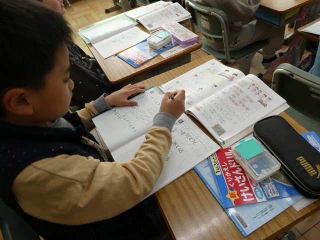 自分の手元でおはじきを動かして計算することで、大きな数の概念がよりしっかりと身についているようでした。