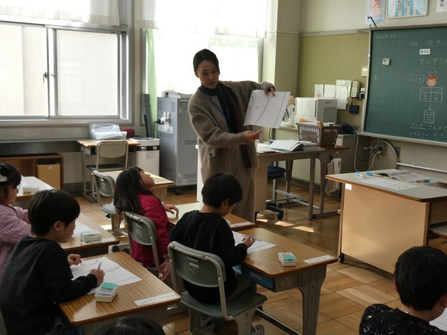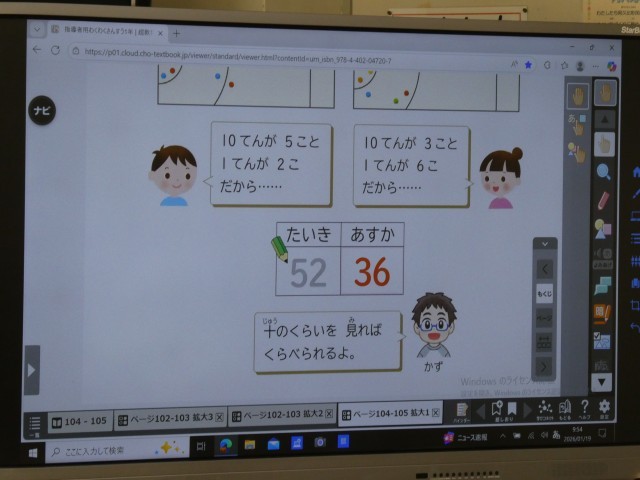 算数「大きな かず」の学習で、単に数字を比べるだけでなく、実際におはじきを動かすことで、「十の位」と「一の位」の意味を体感的に学んでいました。