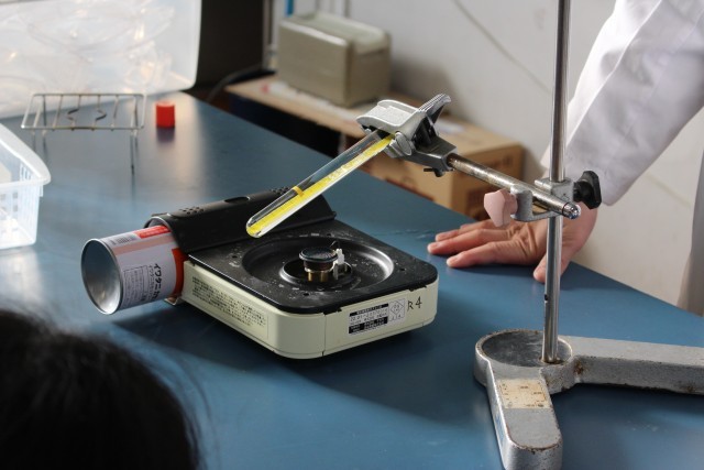 4年生は理科の学習で「もののあたたまり方」を学んでいました。今日は熱された水はどのように温まっていくのかを明らかにするための実験を行いました。