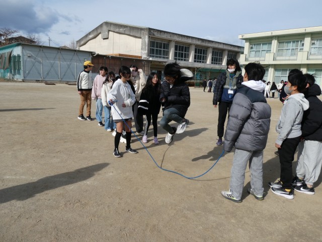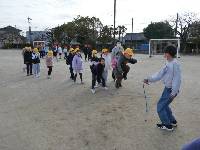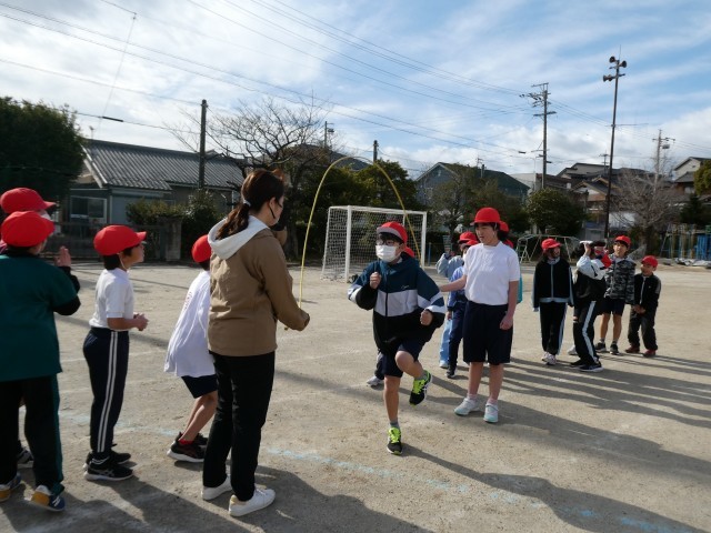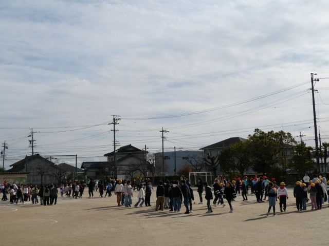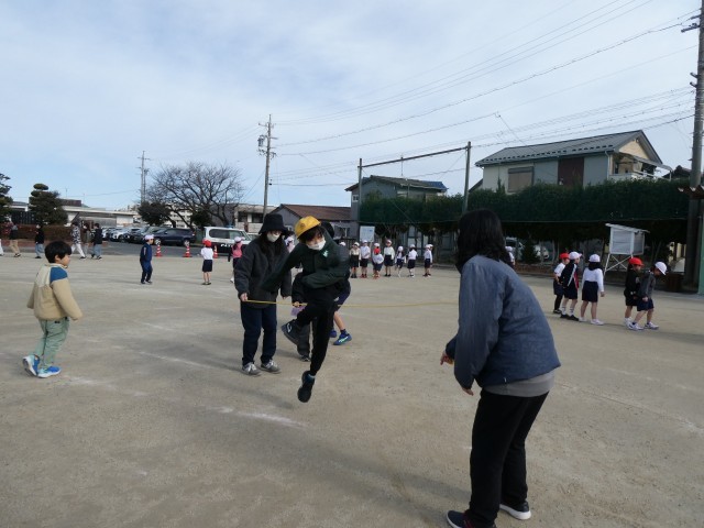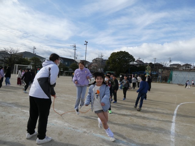 寒空のもと、大放課には各クラスでなわとび集会に向けての練習が行われていました。かけ声をかけたり、手拍子をしたりしながらみんなでタイミングをあわせていました。また、入ることが苦手な子も、後ろの子から押してもらってタイミングをつかみ、入ることができるようになっていました。どのクラスも上手に跳べることができるようになってきています。みんなで頑張っている姿をみていると、とても応援したくなりました。本番は金曜日です。寒さが厳しいという予報ですが、寒さを吹き飛ばすほどの熱気で盛り上がるなわとび集会になることを期待しています。