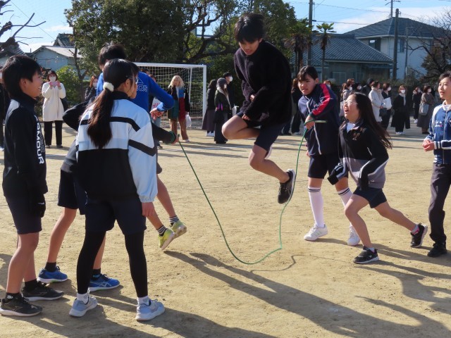 跳ぶ人のタイミングに合わせて、縄を回したり、手拍子をしたり、声をかけ合ったり、みんなで協力して、最高記録を目指して練習に取り組んできました。