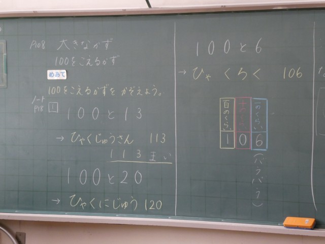 おうちでも、ぜひ「100より大きい数」を一緒に探して、子ども達に「これなんて読むのかな」と聞いてみてください。