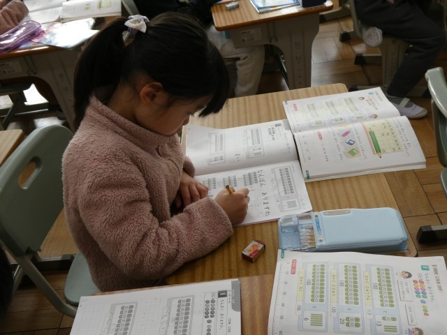 これまでは「100」までを学習してきましたが、いよいよ「100を こえる かず」の数え方や書き方に挑戦しています。