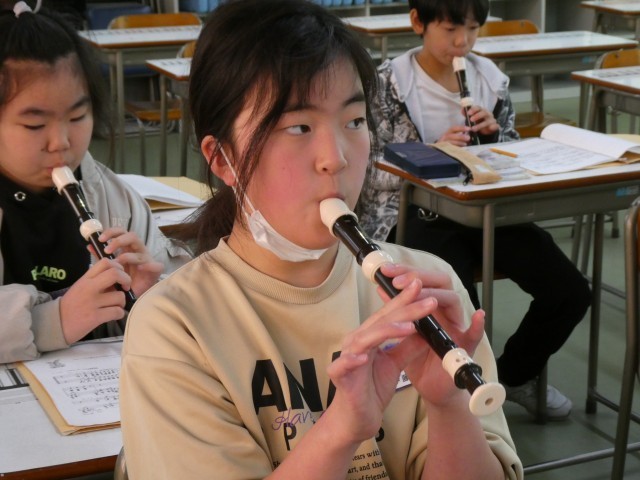 4年生が奏でる優しくも力強いリコーダーの音色が聞こえてきました。