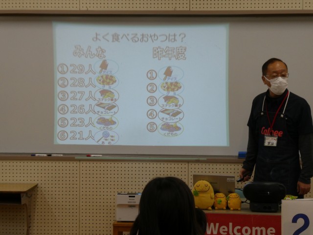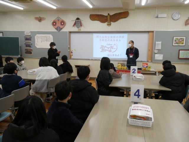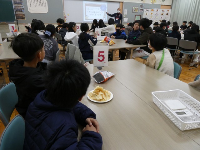 5年生を対象に、カルビーの食育出前授業「スナックスクール」を実施してもらいました。