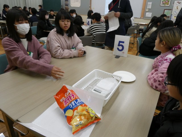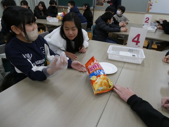 実際に、「ポテトチップス」を使って、一人分のおやつの量を考えました。