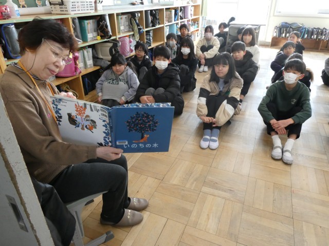 今朝の「なんブックさん」による読み聞かせでは、高学年の教室でブリッタ・テッケントラップ作『いのちの木』が紹介されました。