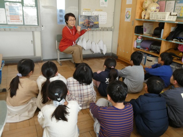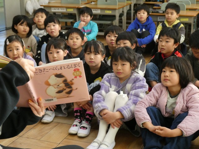 ボランティアの方が一言一言を噛みしめるように読み進めると、子どもたちは静かに、そして真剣な眼差しで絵本の世界に聞き入っていました。